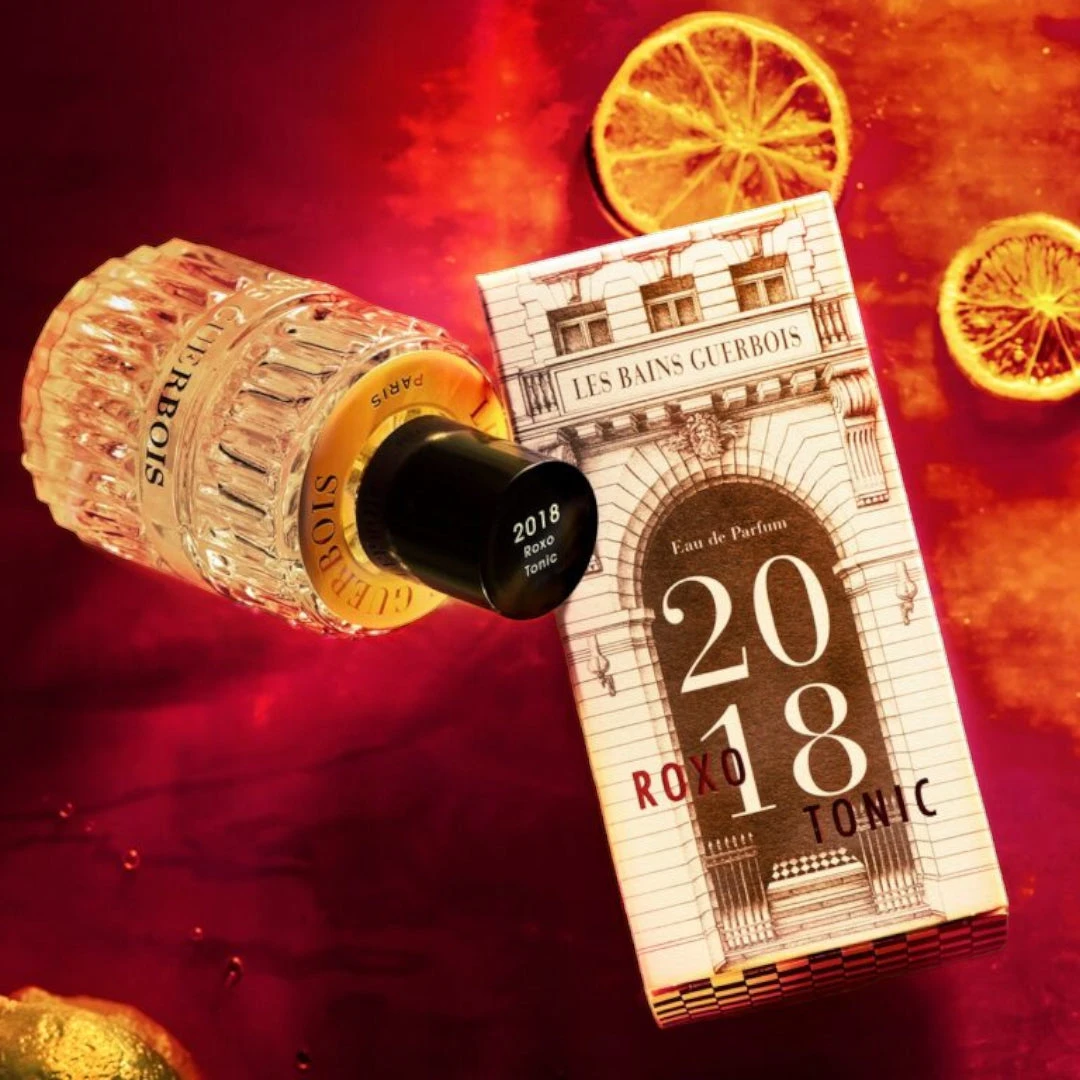 2018 Roxo Tonic by Les Bains Guerbois is like a sparkling aromatic citrus cocktail with lemon, ginger and a splash of black tea, sipped in the warmth of a dark room scented with vetiver and sweet woods.