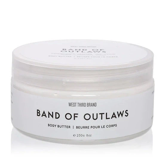 Specially formulated for fast absorption, West Third Brand’s luxurious Body Butter hydrates, nourishes leaving your skin silky and lavishly scented. It is strongly fragranced with best-seller Band of Outlaws.