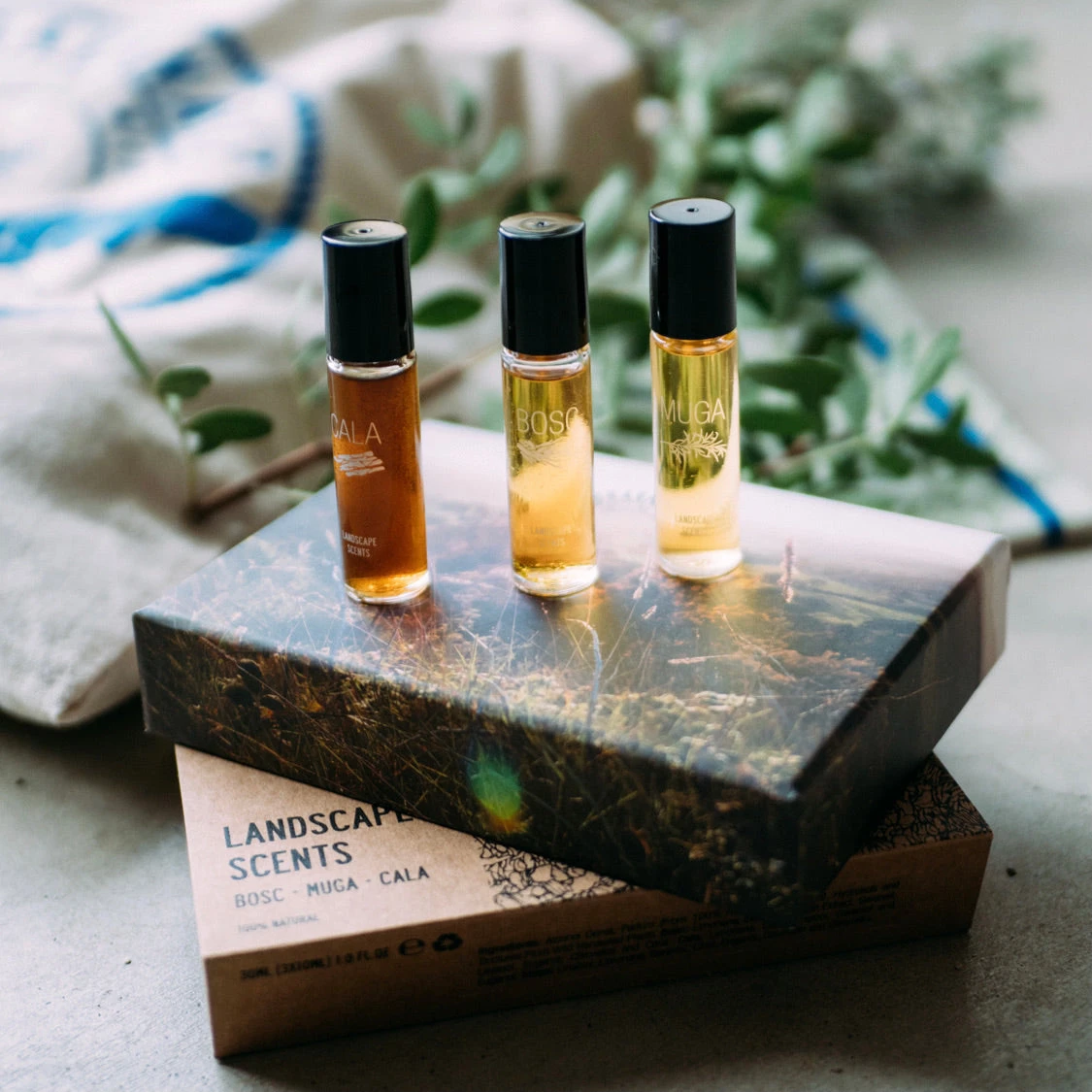 This set contains three 10 ml bottles, containing each of the Landscape Scents (BOSC, MUGA and CALA). Without a doubt, this is the best way to take a dive into the olfactory essence of the Empordà region of Spain and discover which of their interpretations of the landscape best suits your mood at the moment or your personal scent. It is also the perfect gift to introduce others through fragrance to this beautiful region.