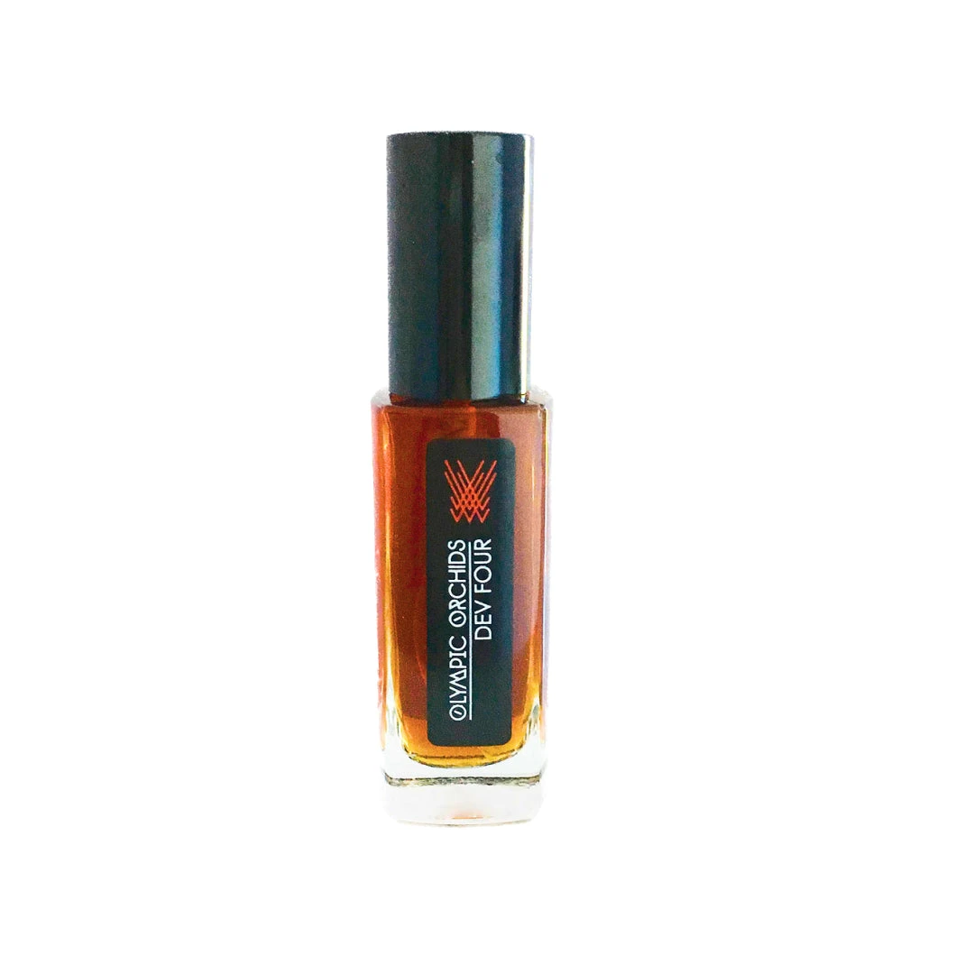 Dev Four is the bare-bones, desert-dry version of all the incarnations of the Devil in Quantum Demonology, by Sheila Eggerberger. Here the scents are pared down to their unifying essence, clearing the way for the labdanum to shine through. It’s the scent of coming back full circle to where one started, but with new eyes, as if the world had been tumbled smooth and worn down by events to reveal the clear, shining gemstone at its center. It is the scent of transcendence and triumph after great loss, the calm vision that comes after having weathered a disaster. It is a simple reprise of the original theme, stripped down to its soul, with no more illusions. It is the aura of readiness to move on to a new and higher level in the infinite spiral of life.