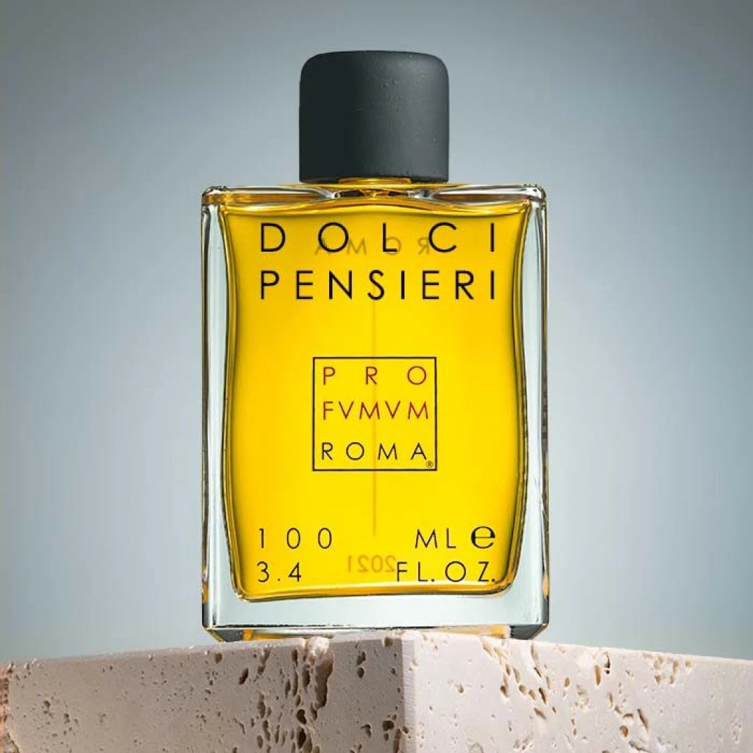 Dolci Pensieri by Profumum Roma is like rich rose syrup poured over warm sandalwood. Freshened just a bit with peony and geranium, sweetened with vanilla. Another long-lasting goodie from this impressive Italian niche fragrance house.