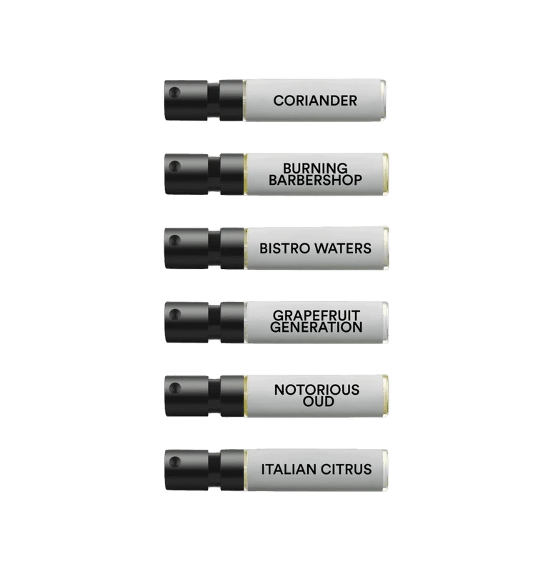 Set contains 6 x 1.5ml perfume sample spray vials