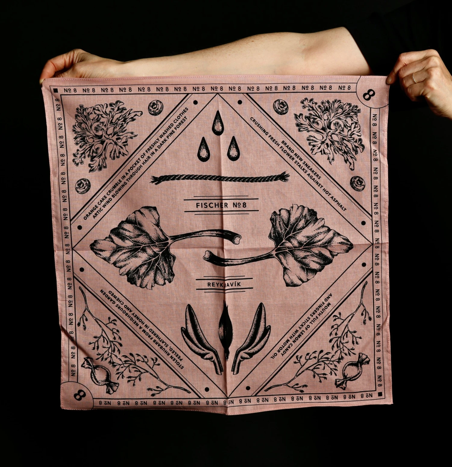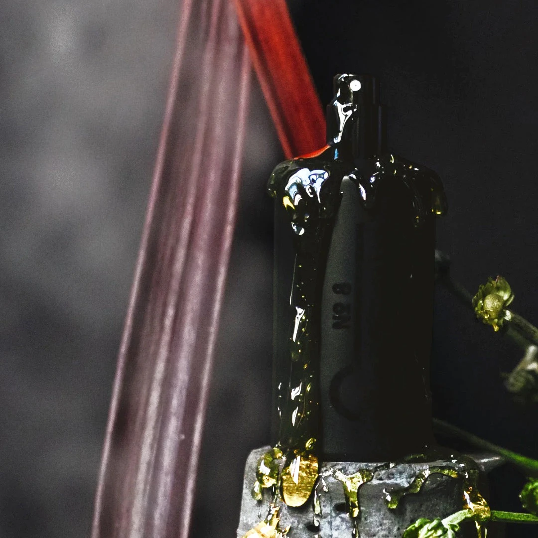 Handmade in Iceland. Wildcrafted sustainably. Available as an eau de parfum and a solid perfume. The 50ml eau de parfum comes wrapped in a bandana with a design by co-founder Ingibjörg Birgisdóttir capturing the No. 8 scent and its inspirations.