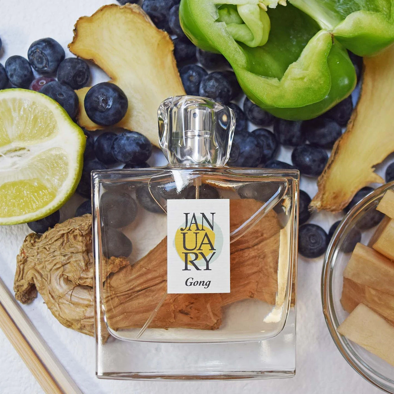 Gong by January Scent Project is described by perfumer John Biebel as a green musk perfume with prominent (and unusual) notes of blueberry, green pepper and daikon radish. A completely original and long-wearing verdant journey that finally ends in a soft, sweet berry-musk.