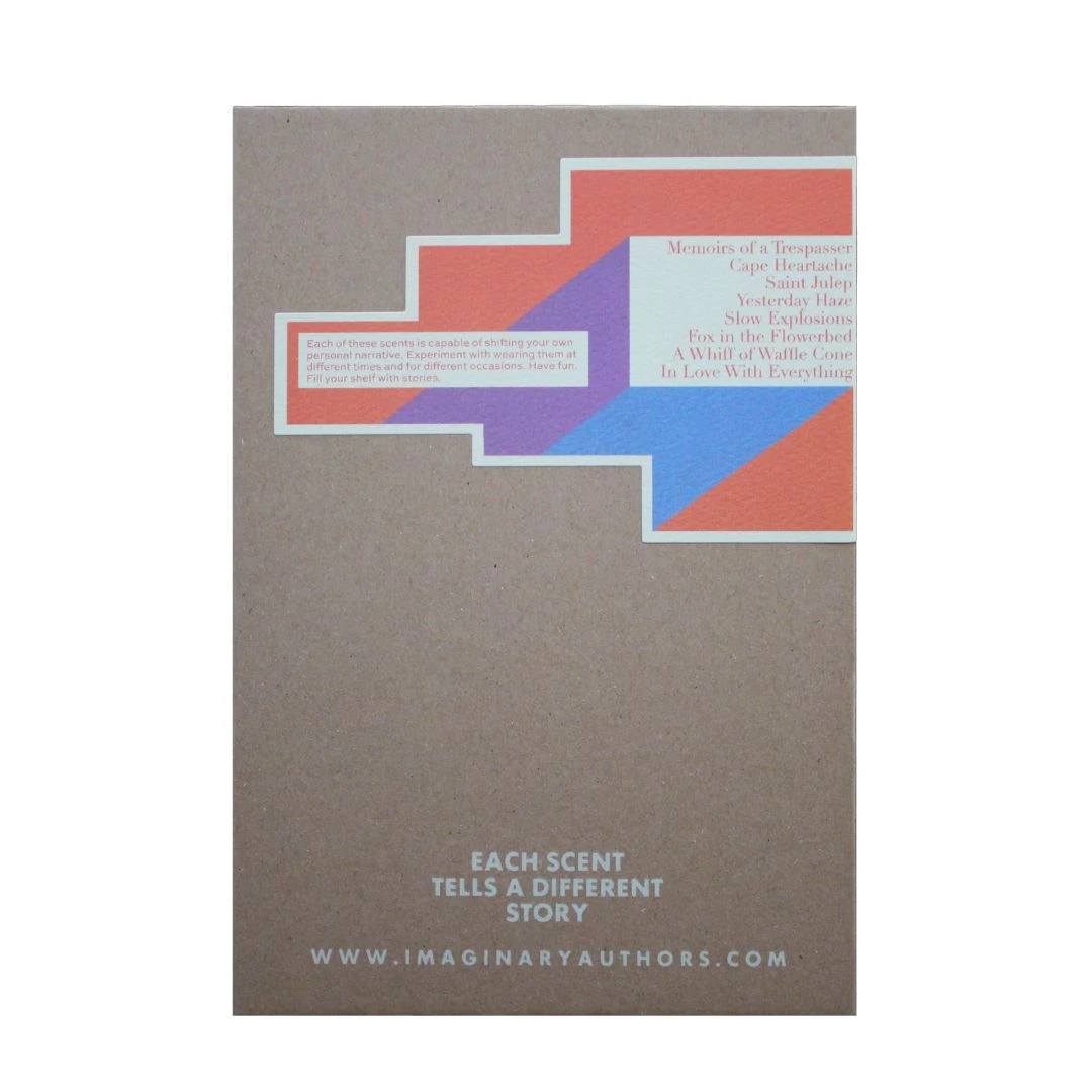 Set contains 8 x 2ml perfume sample spray vials housed in Imaginary Authors’ signature book-inspired packaging.