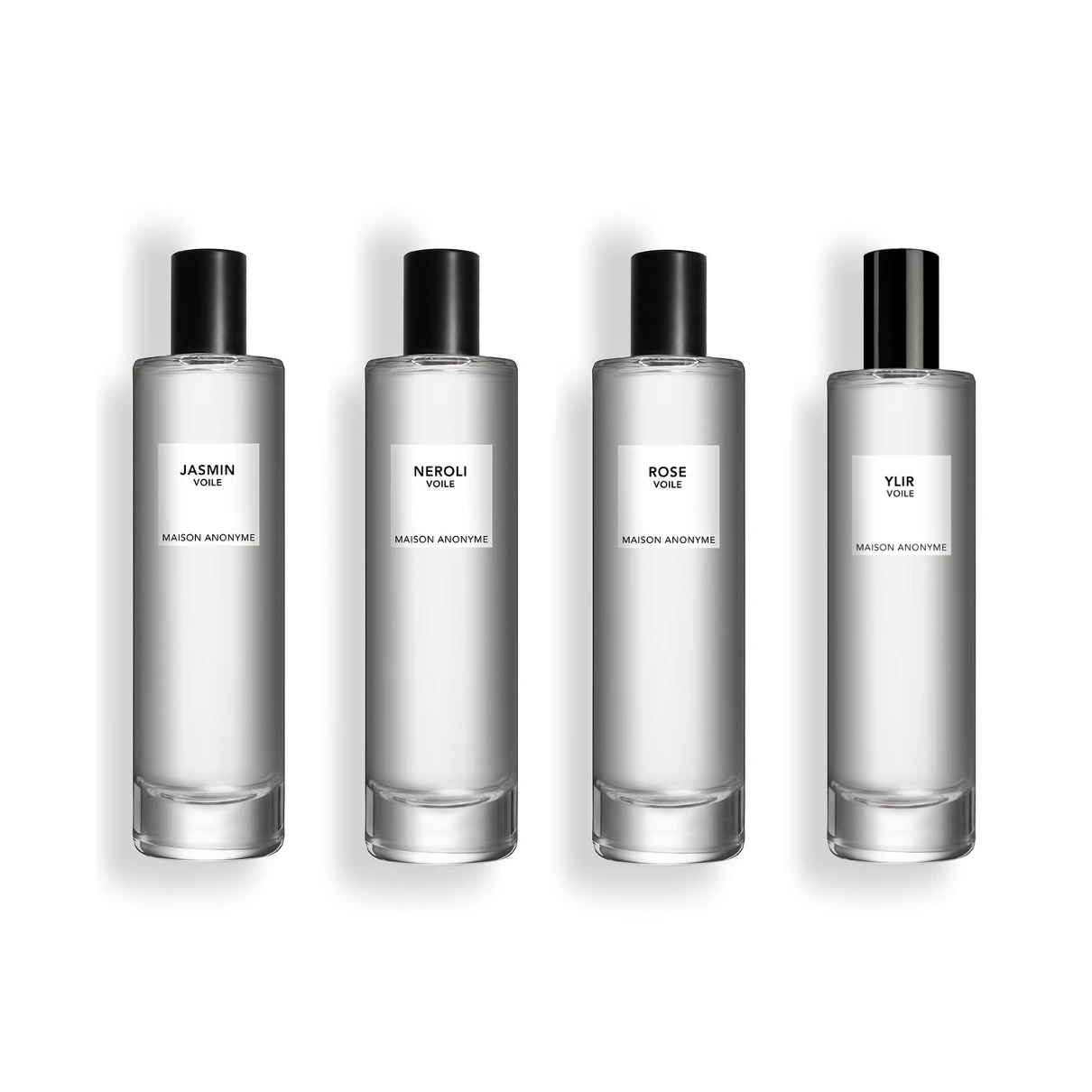 We’ve created a sample set of four gorgeous voiles blended by Maison Anonyme in Los Angeles. Les Voiles are designed to be used on the skin, in the air and on textiles. These stunning, transparent scents were created to be enjoyed with abandon.