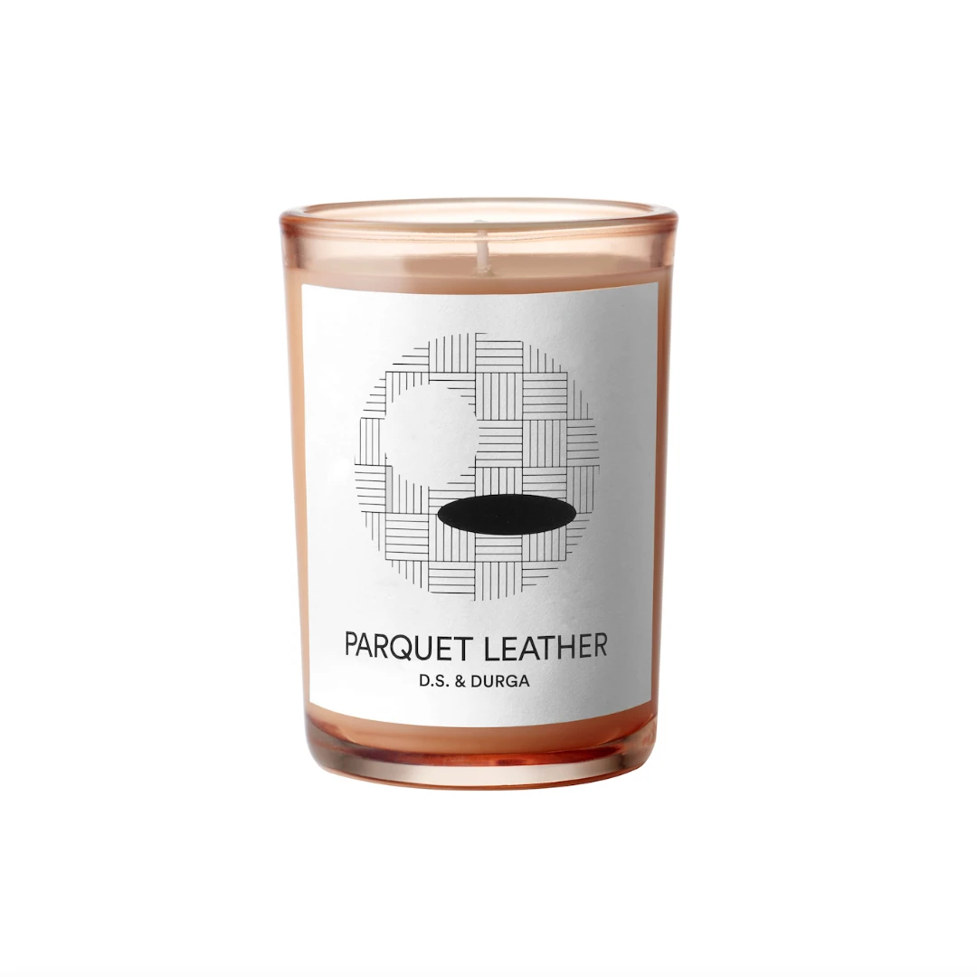 Parquet Leather Candle by DS & Durga is a basketball-inspired court vision of orange leather, maplewood, red oak parquet and fancy sneakers. Vegan. Animalic and timeless.Â