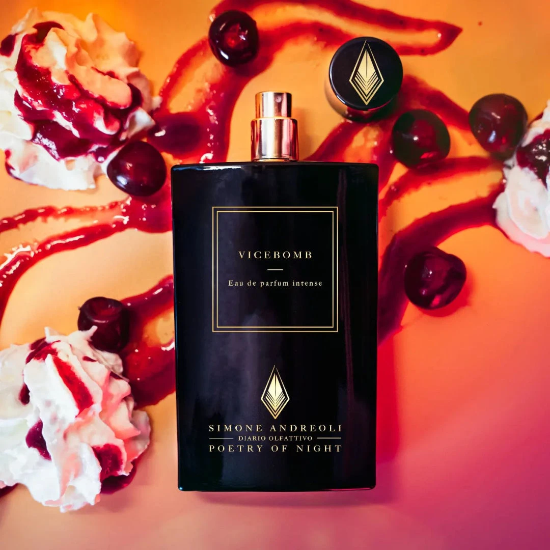 Simone Andreoli’s Vicebomb is an irresistible and slightly boozy amber blended with red fruits drenched in sugary swirls of tonka, vanilla, with a dash of salted caramel. A super-juicy and unapologetically decadent dark cherry gourmand bombshell.